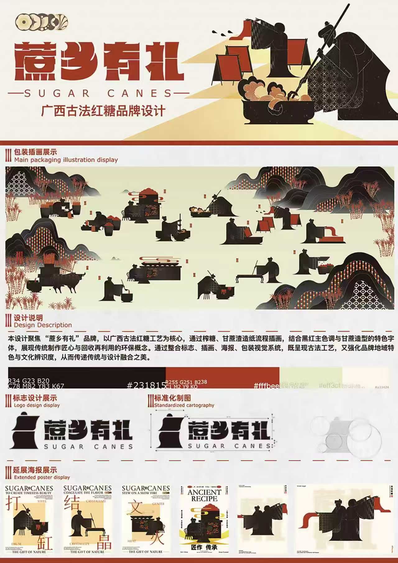 作品名:《“蔗乡有礼”广西古法红糖环保包装设计》 作者:敬明杰、李雯、袁志祥