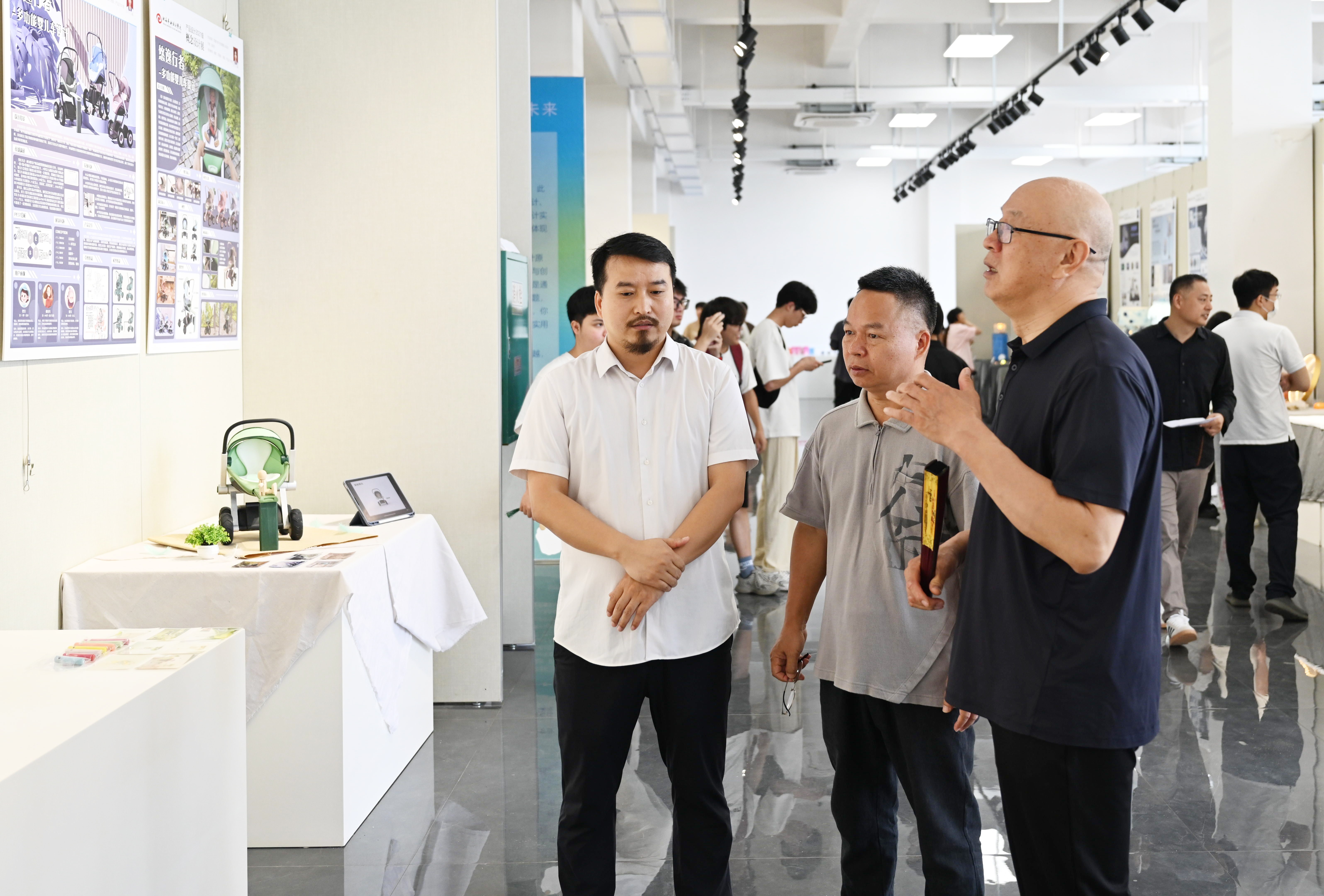 2024年5月27日上午,我院产品设计专业“智慧生活·创意未来——2021级产品设计作品展”在南校区艺德楼8楼北侧展厅拉开帷幕。此次展览集结了产品设计专业学生们的创新成果,吸引了众多嘉宾的关注和参与。校长卢新华、中国工艺美术大师利成世、学院院长李林平、副院长白建强、贾荣建教授、北海市工业发展促进中心工艺美术科科长钟志慧、广西工艺美术大师陈建炜、北海喜蛙家居设计有限公司总经理何一夫及产品设计专业师生们共同出席了开幕式。开幕式活动由产品设计专业教师陈书娟主持。