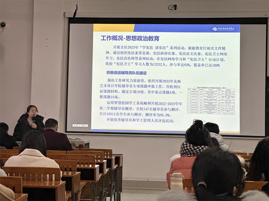 为深入学习贯彻习近平新时代中国特色社会主义思想,落实立德树人根本任务,总结、发现、解决在学生管理工作中的问题,持续提升我校学工工作水平,总结成效、凝聚共识、共谋发展,1月22日下午,学生工作处(部)在伦理楼105召开2023-2024学年第一学期学工期末总结大会。学校党委副书记彭仁出席会议,学生工作处(部)、二级学院学工办全体人员,全体年级辅导员参加会议。
