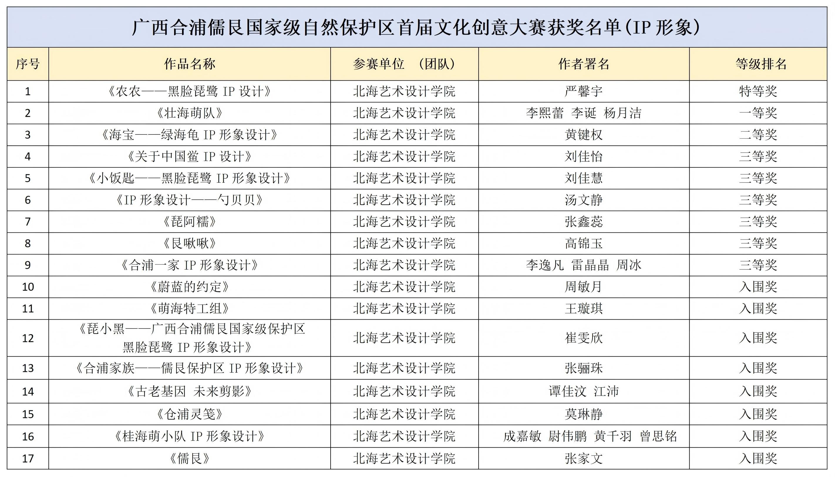 喜报丨造型艺术学院在广西合浦儒艮保护区首届文化创意设计大赛中获佳绩