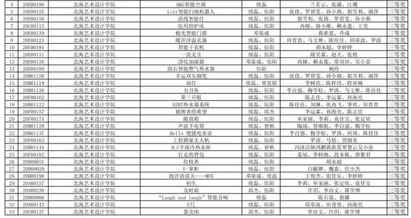 我校(北海艺术设计学院)获优秀组织奖,续磊老师、张莹老师、伍阳老师三位老师获优秀指导教师。