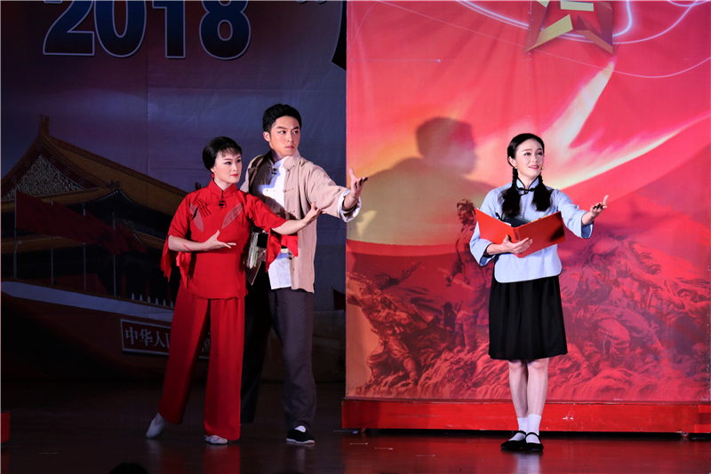 首先以经典剧目《红色娘子军·逃出虎口》拉开帷幕,演员将深受压迫的人民为迎接黎明的坚定信念展现得淋漓尽致;接下来,《智取威虎山•深山问苦》选段,情节跌宕起伏,再现了共产党解救中国人民于水生火热之景,弘扬了共产党员英勇善战的革命精神;《红灯记·刑场斗争》演绎了主人公从容对敌、巍然如山的优秀品质,让现场观众热血沸腾;《红色娘子军》“永葆战斗青春”片段和“为革命为人民而战”片段展示了那个时代女子成长的坚毅,让在场的北艺学子们惊叹演员精湛的演技;最后的《红色娘子军•接过红旗肩上抗》一展娘子军飒爽的英姿及巾帼不让须眉的气势,将整场表演推向了高潮。
