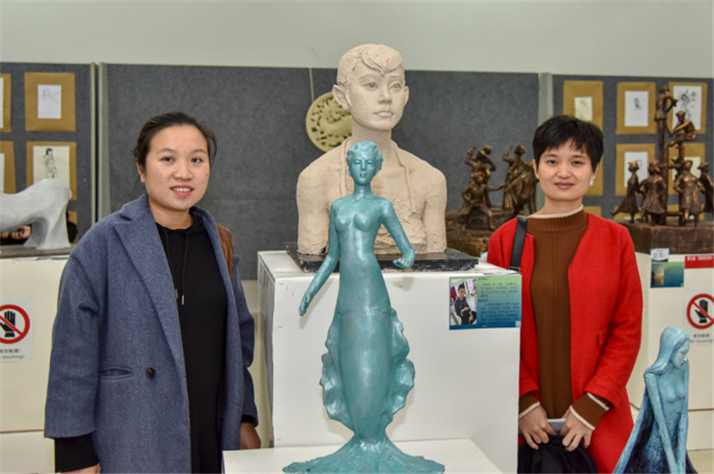 此次展览展出的是雕塑系师生作品,展出作品除雕塑作品外,还有一些绘画作品。参加展览的师生细细品酌每件作品的精妙之处,感受这一场视觉艺术的饕餮盛宴。