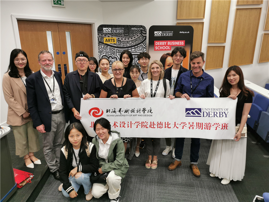 同学们和德比大学国际处Richard处长,Joy女士,艺术学院David院长合影