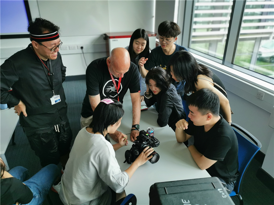专业课分阶段分方向进行着。本周我们学习的是脚本和摄影。在艺术学院媒体专业老师指导下,同学们拍摄自己创作的小剧本。下周会增加一堂编辑的课程,每个小组完成一个小视频作品。