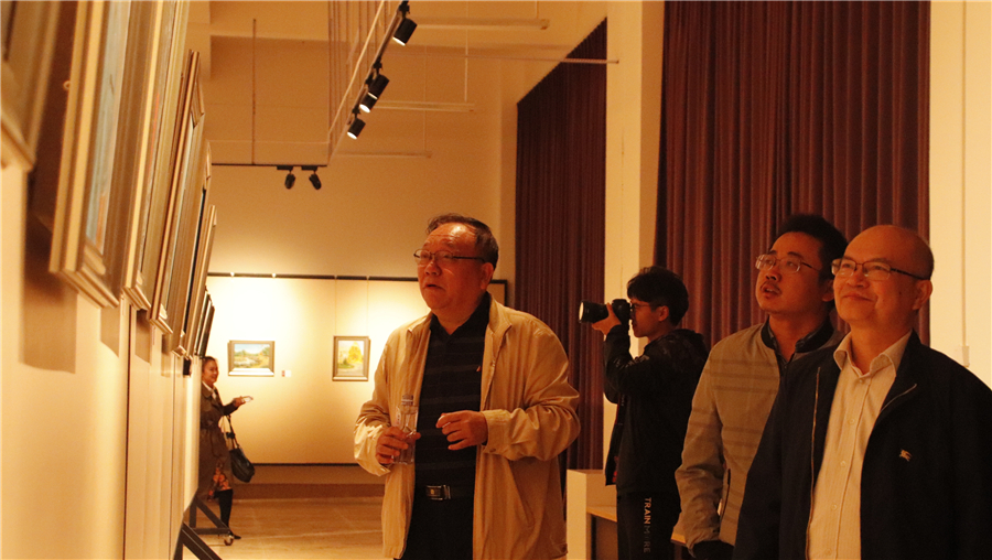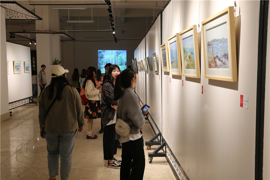开幕仪式后,大家进入展厅观展,对作品进行现场交流指导。