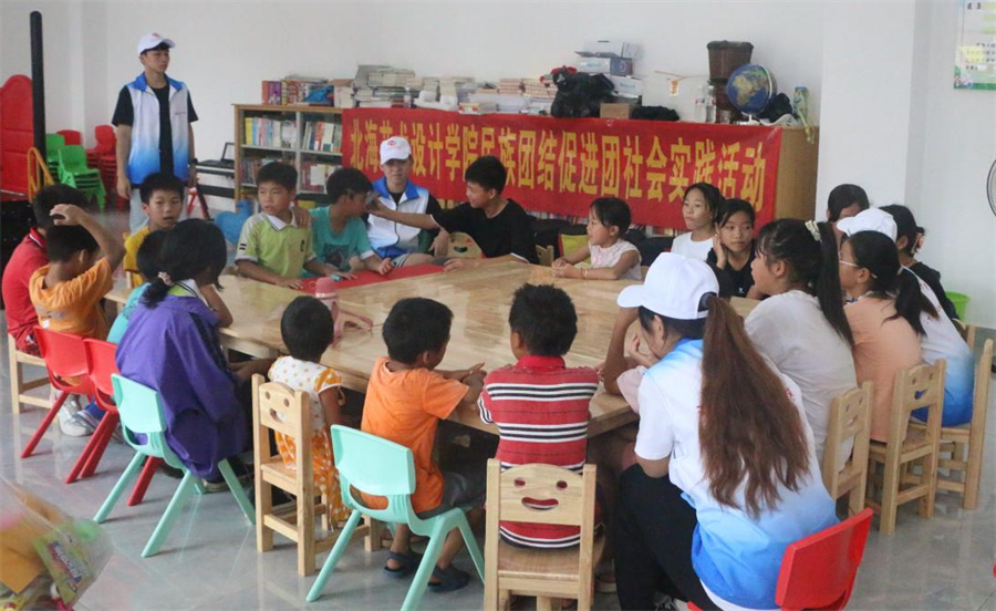 民族团结促进团赴大化瑶族自治县拿银安置社区公共服务中心开展支教服务活动。