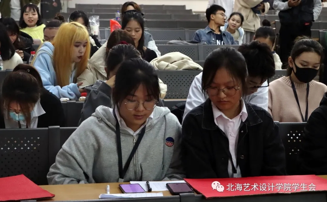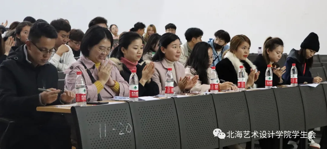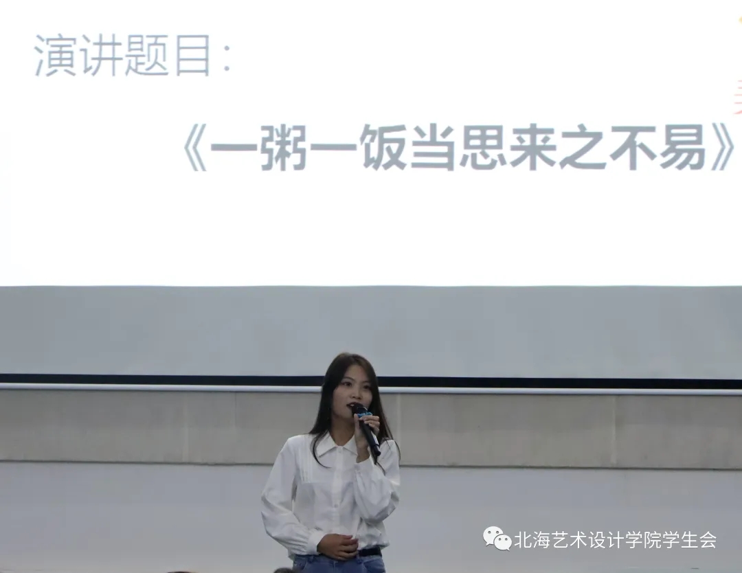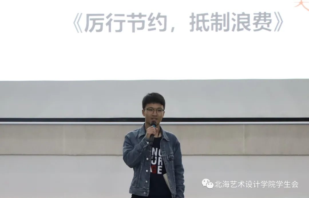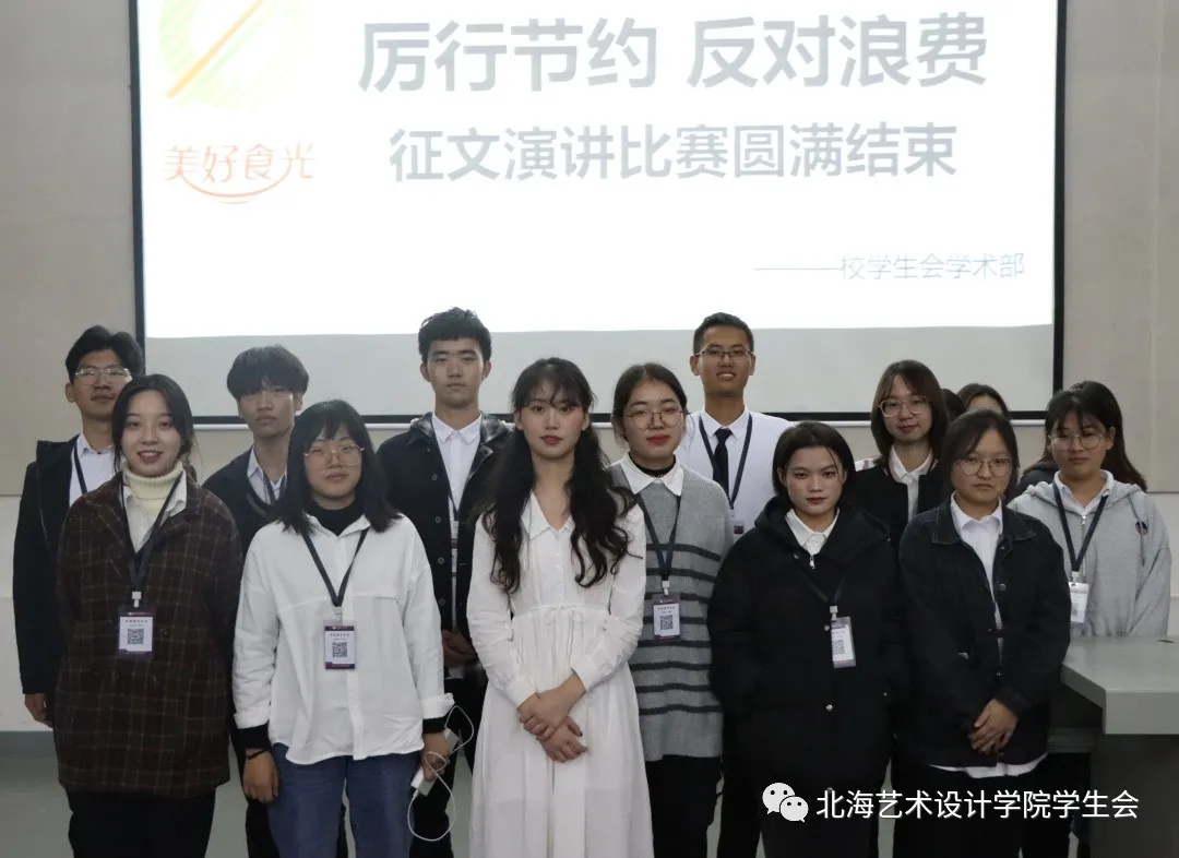 12月14日晚17:40,由北海艺术设计学院校团委主办,校学生会学术部承办的“厉行节约,反对浪费”——征文演讲比赛在西校区功德楼G-107举行。担任此次嘉宾兼评委的老师有校团委副书记宋慧敏、学工处副处长,心理咨询中心主任刘玲花、学工处副处长班媚、动画学院分团委书记巴瑞斌、服装学院学工办主任曾麟、服装学院分团委书记曹永攀、校团委老师陈文斌、校团委老师杨美琪、教育学院老师张碧蓉和黄海林、设计学院老师王慧慧。