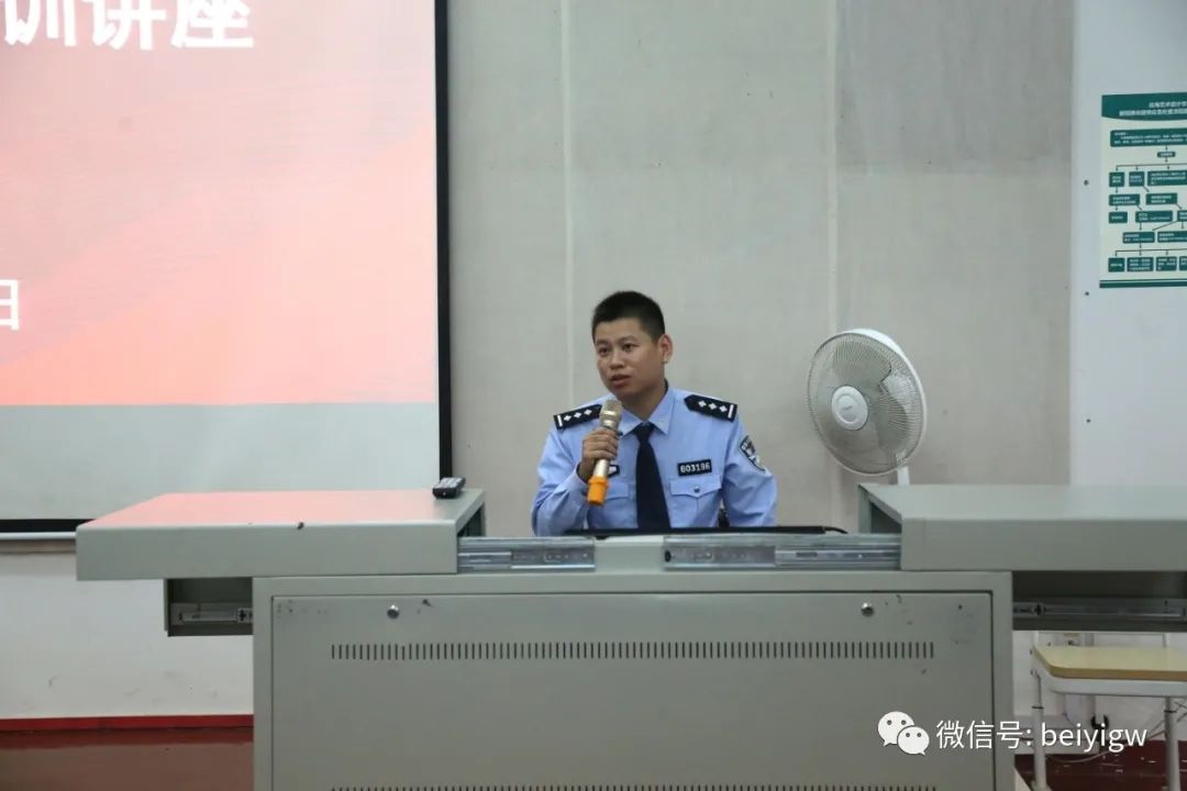 来自龙潭派出所的欧一平所长和韦雷磊副所长分别就近来发生虚假中奖信息、贷款信息、网络购物的新型诈骗案件,剖析了电信网络诈骗的常见形式、电信诈骗案件侦办难点、身边真实发生的典型案例、如何识别防范电信网络诈骗及受骗后的补救措施等方面,详细阐述了电信网络诈骗的原因以及防范电信网络诈骗的主要措施,帮助老师们向全体学生普及鉴别、预防、处理电信网络诈骗等相关知识。