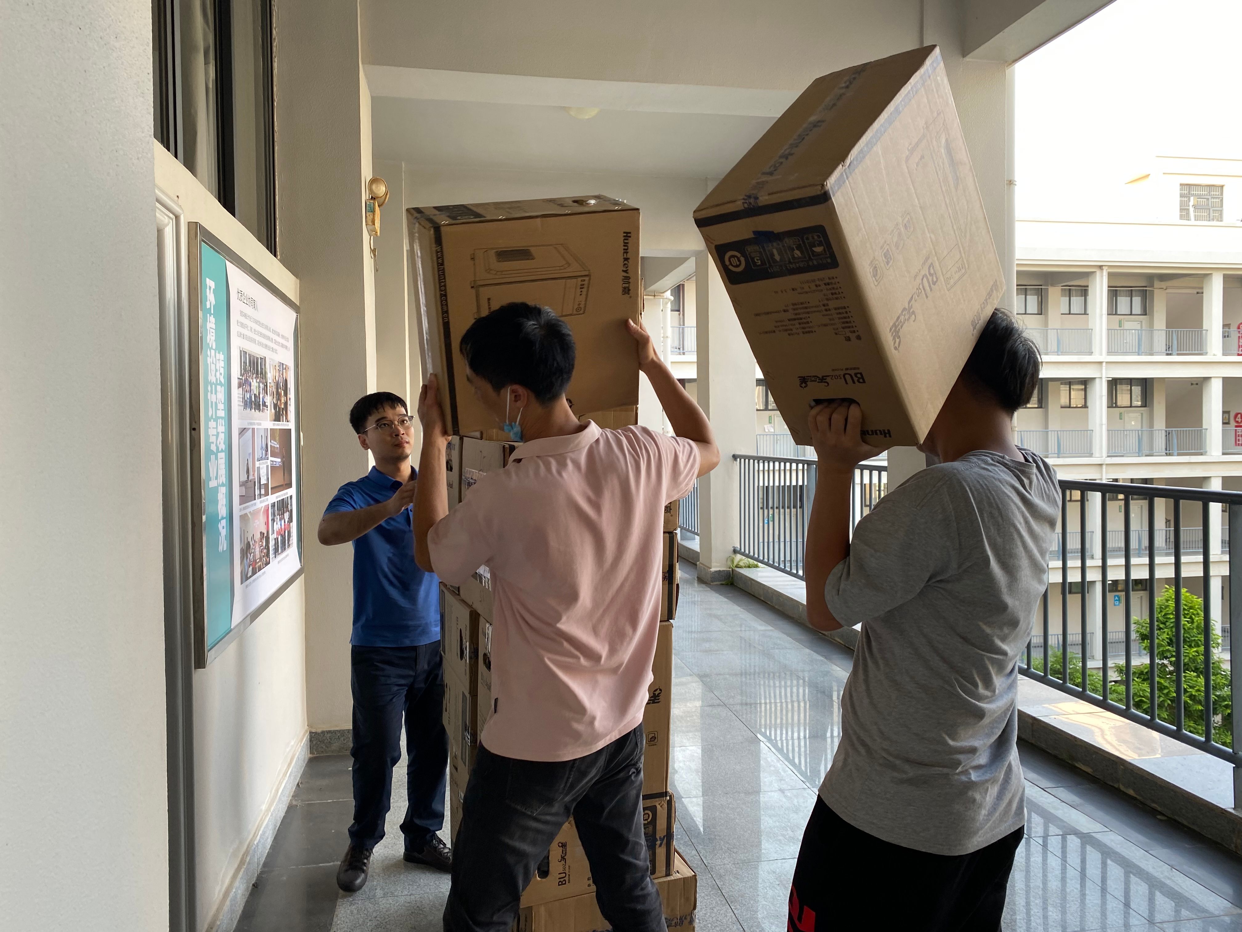 2022年秋季学期,学校采购了大量新电脑等设备,设备与信息处老师们忙碌工作,搬运、消杀、拆箱、安装、配置,忙得不亦乐乎,汗水浸透了衣衫。
