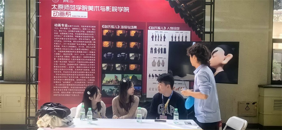近日,由北京市广电局主办的“北京动画周”在北京展览馆开幕。为拓宽学生专业视野,搭建理论与实践的桥梁,我校影视动画学院副院长吴锡红、院长助理刘海涛于9月26日带领2022级动画专业学生前往观展,完成了一场从“视觉观看”到“思维拆解”、从“技术触摸”到“文化解码”的调研,沉浸式感受动画行业前沿动态与高校创作风采。